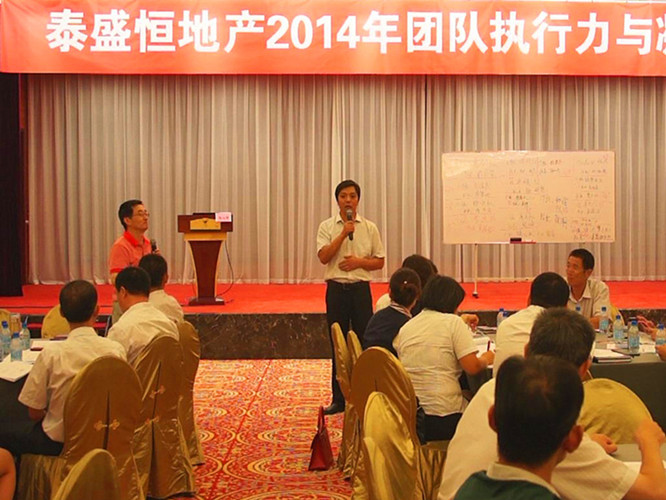 8月16日,伴隨著熱烈的掌聲,泰盛恒地產(chǎn)開展的《打造房地產(chǎn)團(tuán)隊(duì)卓越執(zhí)行力與凝聚力》培訓(xùn)在臨沂賓館二樓會(huì)議室舉行,華鵬集團(tuán)人員、地產(chǎn)全員、啟翔全員、港信裝飾公司、鴻豐園林公司、中匯地產(chǎn)等單位相關(guān)領(lǐng)導(dǎo)和員工代表共170余人參加了培訓(xùn)。公司特邀北京華夏基石管理咨詢集團(tuán)高級(jí)顧問涂山青擔(dān)任講師。